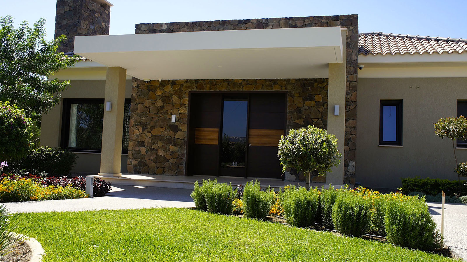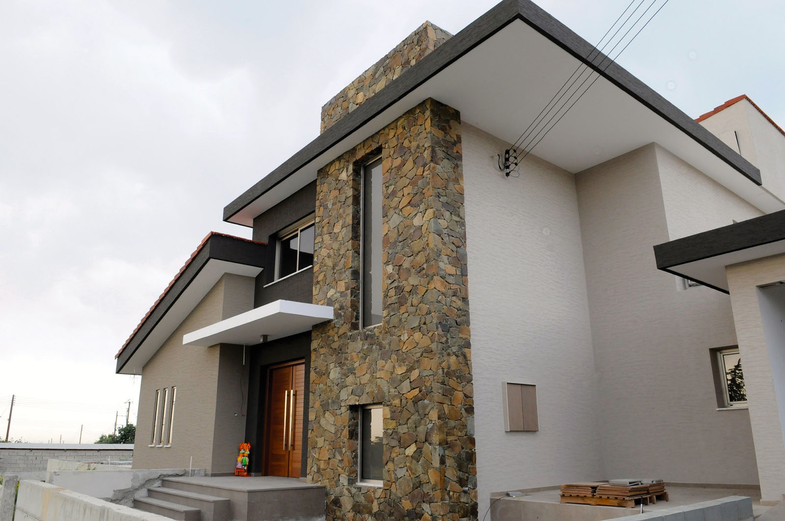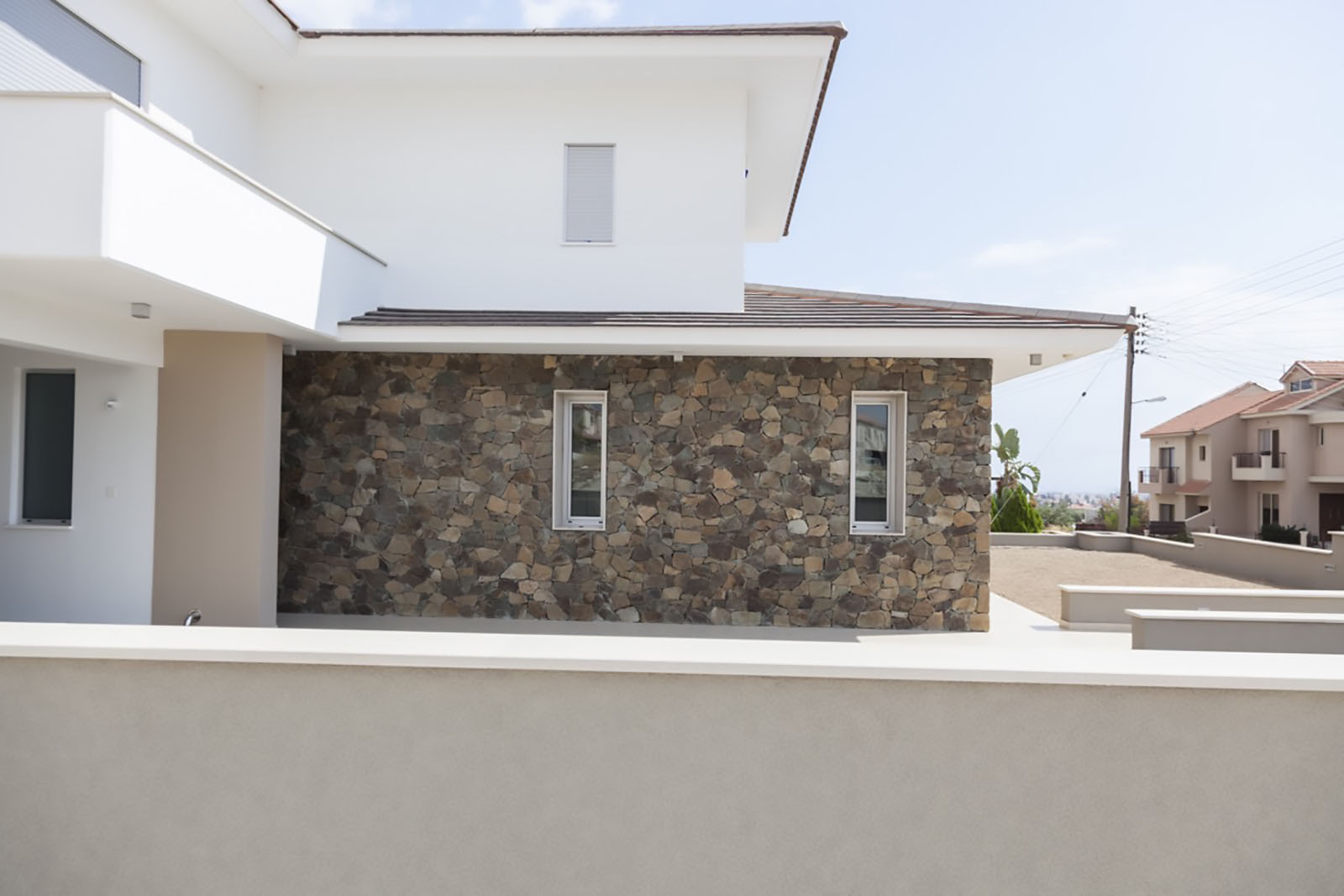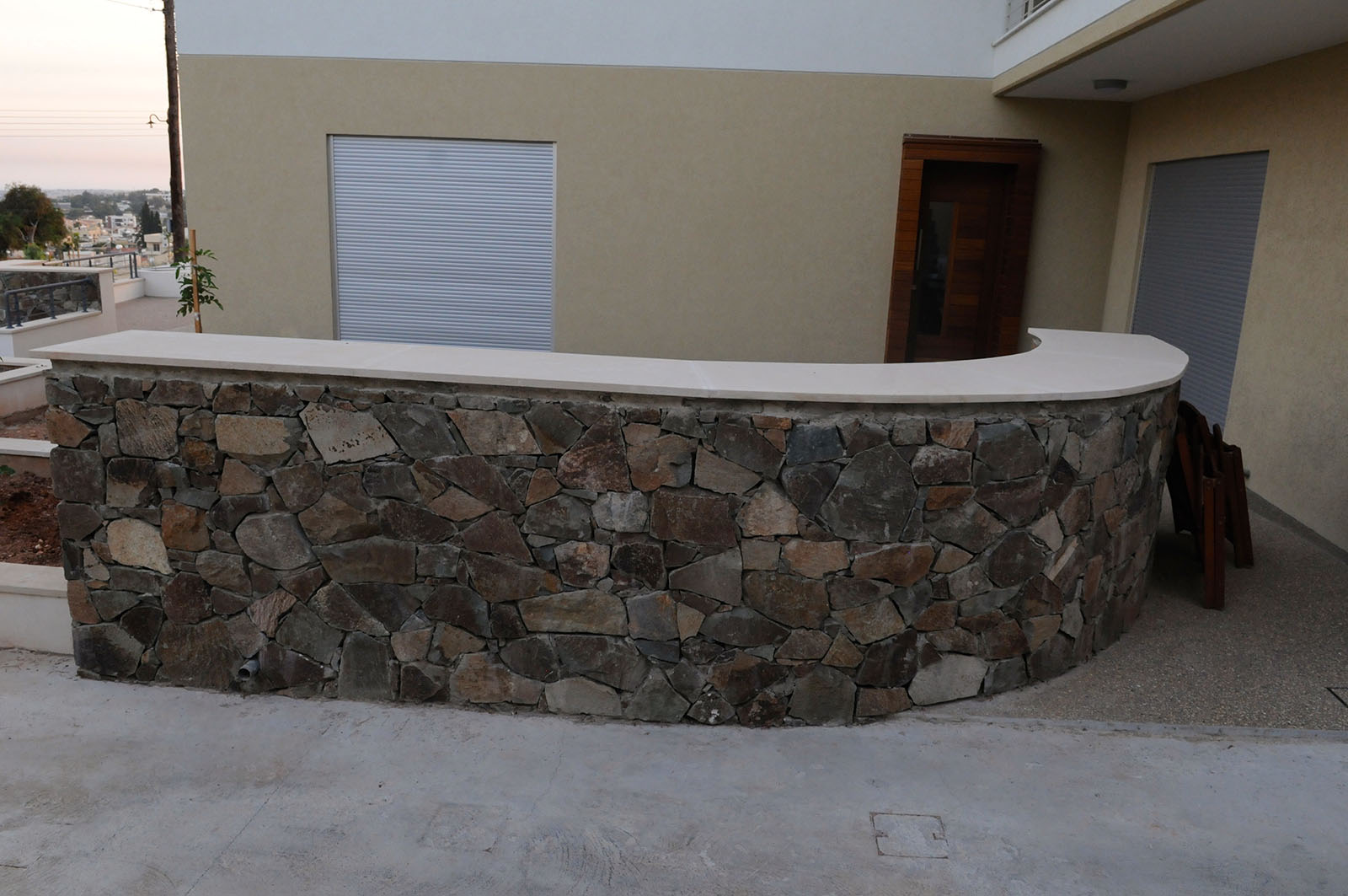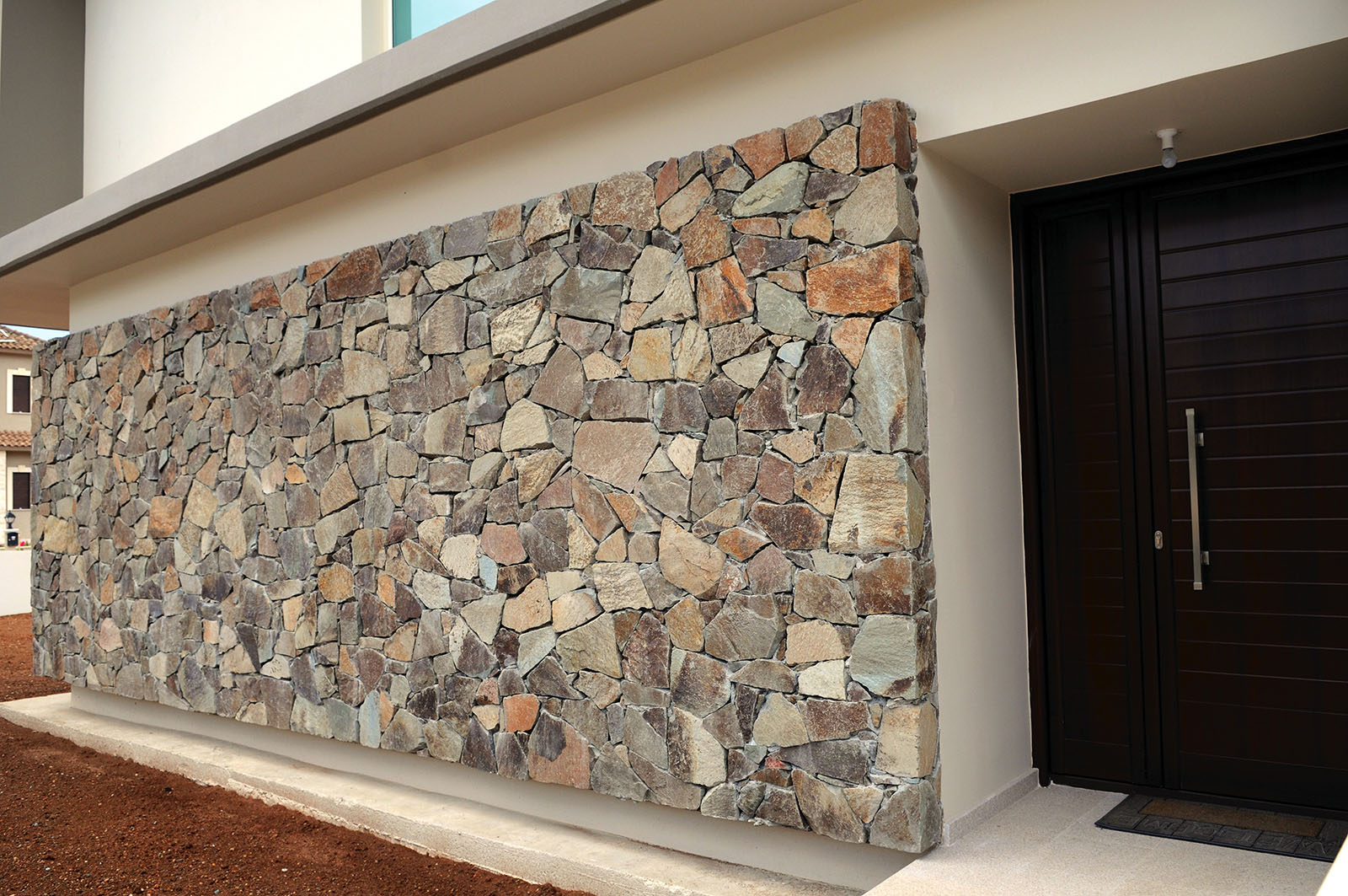 The Brown Stone is built in many different drawings: xeropetri, with filling of rabbets, with lines and with gravel. The thickness of Stone is 20cm when is builted.